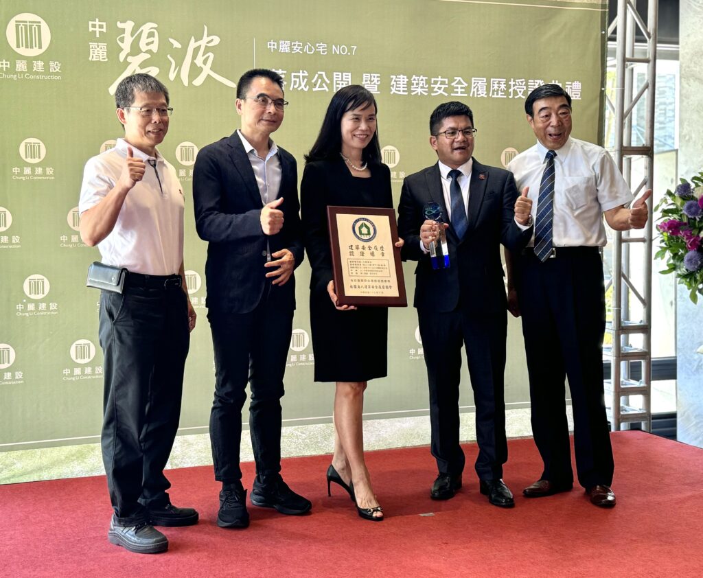 為推廣建築安全的正確觀念,提升台灣建築品質,「建築安全履歷協會」與「中麗建設」合作之【碧波】建案,於今(8/3)日舉辦「公開落成暨安全履歷授證典禮」,特予頒發「建築安全履歷認證標章」,也象徵著台灣的建築安全履歷耐震好建築又增加了一件。