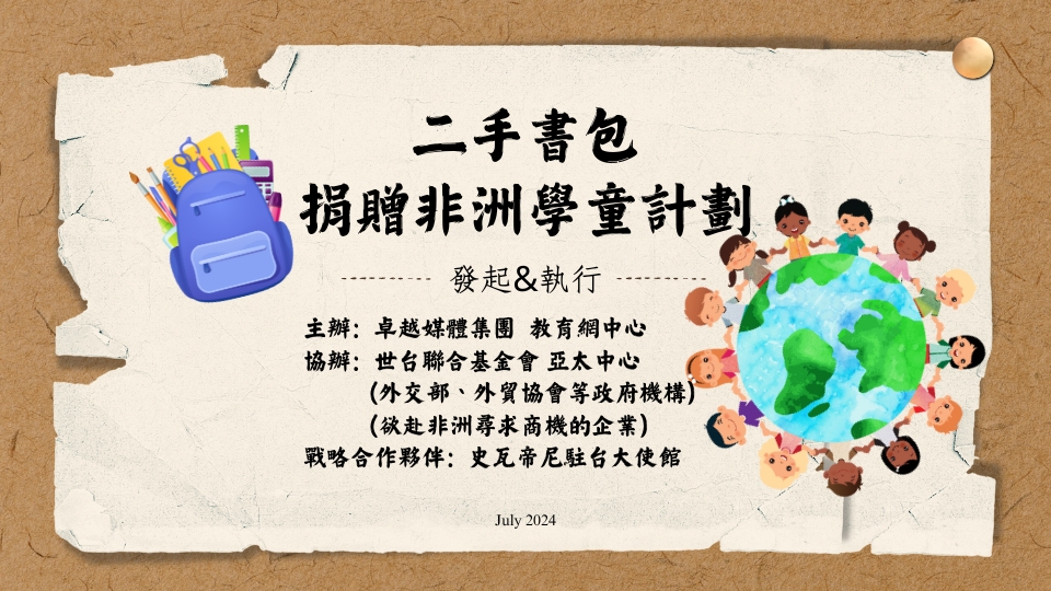 【公益專案】愛的分享與傳遞 二手書包捐贈非洲學童計劃